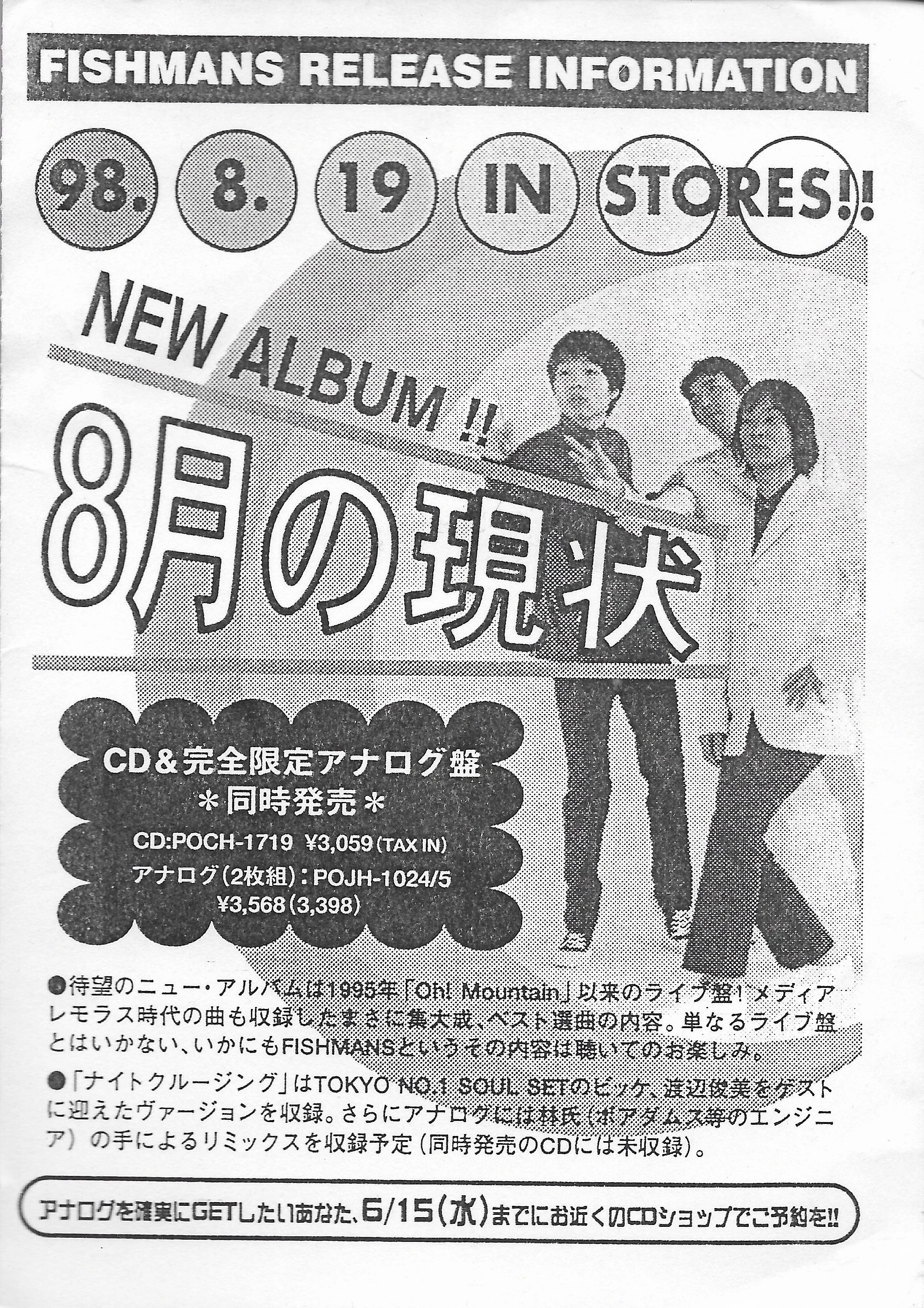 All scans are from original CD print POCH-1719, except for flyer, which was taken from vinyl issue present in Fishmans Rock Festival boxset.