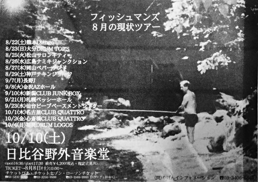 8月の現状 (romanized: The Current Situation in August) was the ninth nationwide tour performed by Fishmans to promote the release of their second live album, 8月の現状, for which the tour was named after. The tour took place between August and October of 1998, totaling in at a monstrous 17 performances, making it the largest tour Fishmans would ever perform. The tour was later described in detail in the band's fanzine, Pool Volume 20.