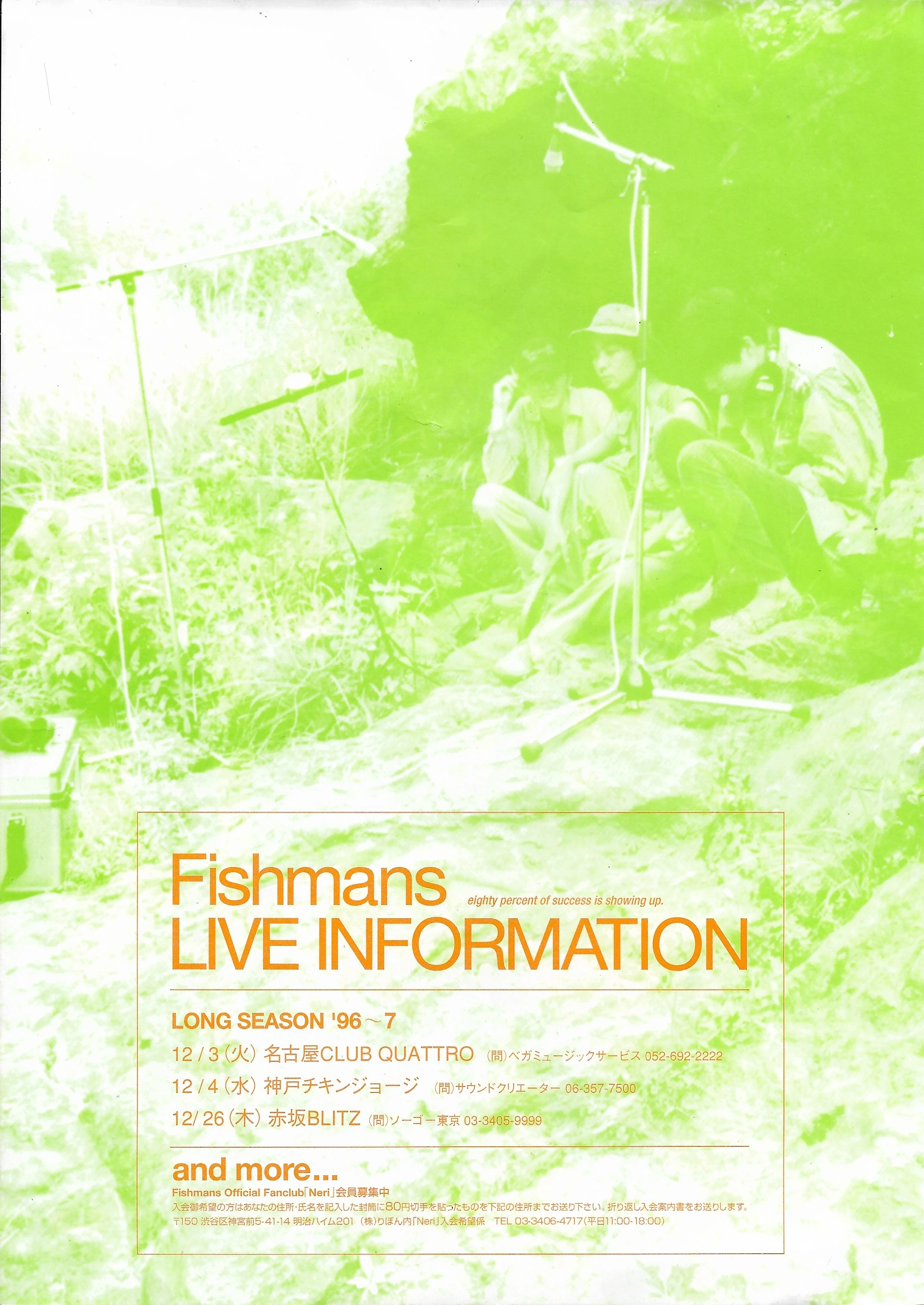 | Oh! Mountain • 8月の現状 • 98.12.28 男達の別れ • 2011.3.28 LIVE@DOMMUNE!!!!!!!!!! • Long Season '96~7 - 96.12.26 Akasaka Blitz • 2nd March 1996 at Shinjuku Liquid Room • History of Fishmans |